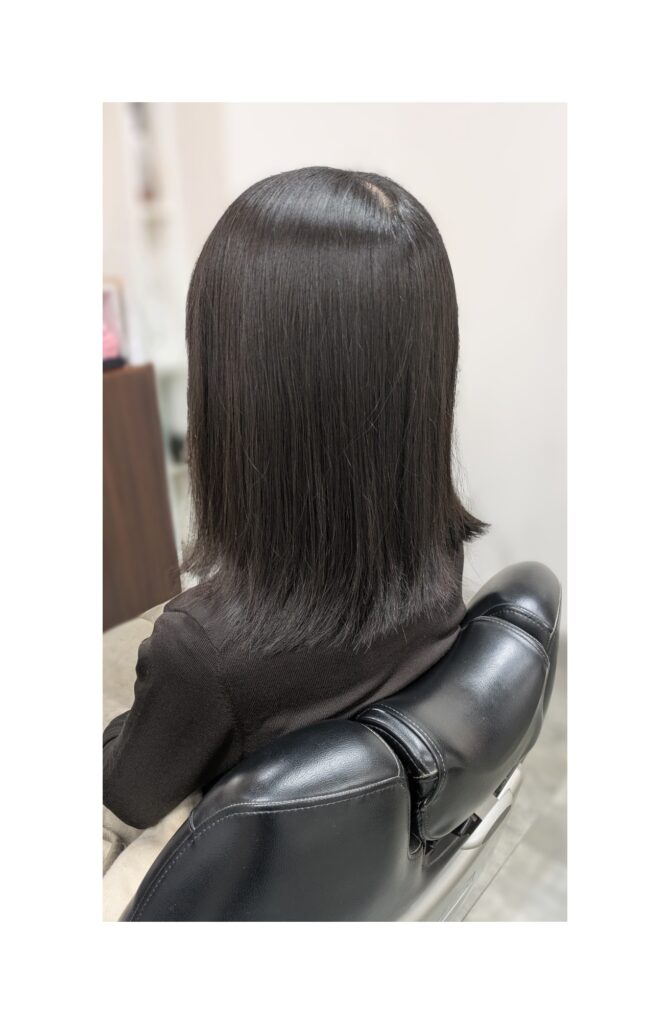 【今回もさせていただいてるメニュー】は、髪質改善トリートメントとカラー剤の中にも栄養剤をプラス!それにより髪が整い艶髪になりました